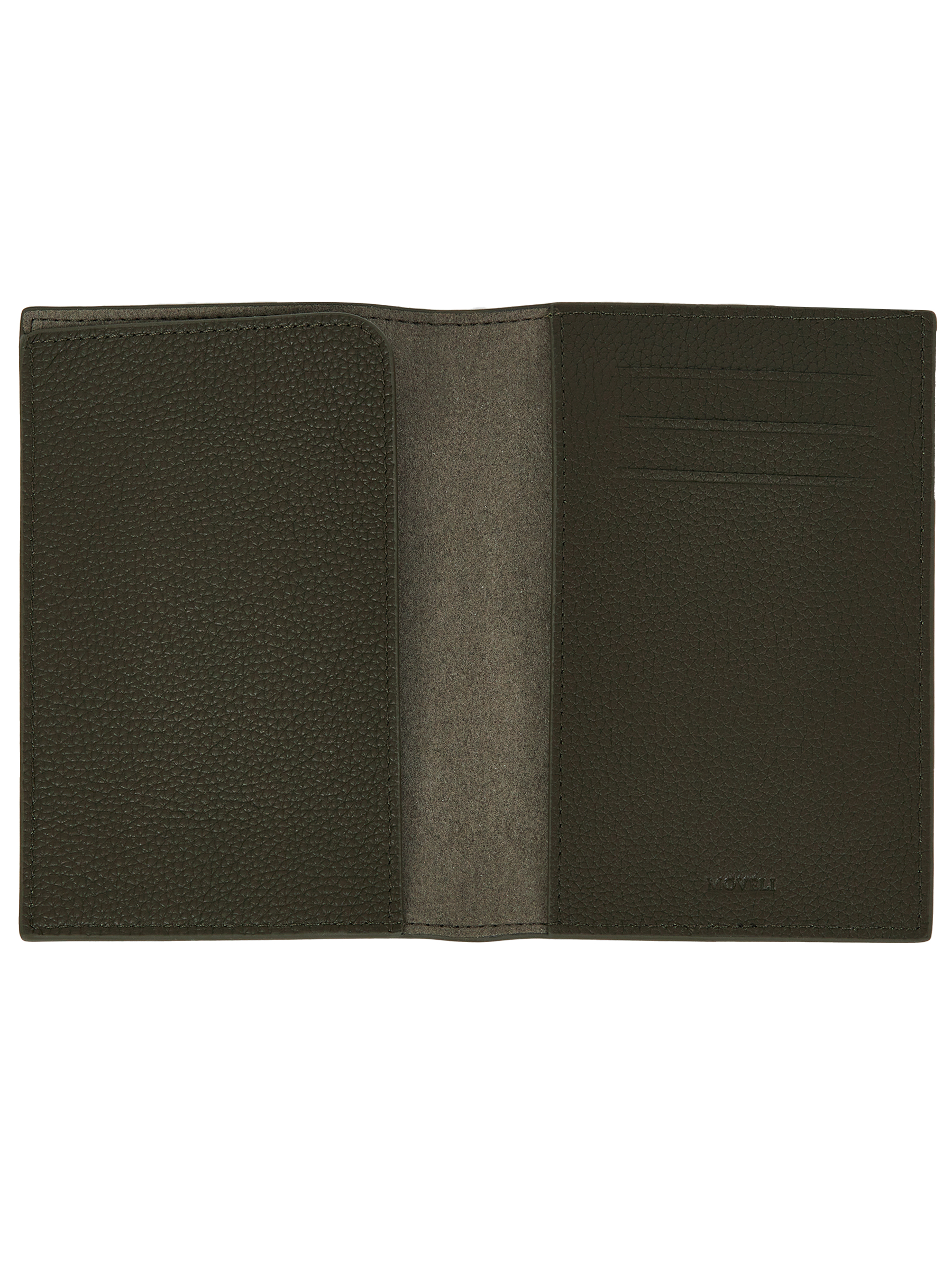 Натуральная кожа; цвет хаки; размеры 10×1×14 см; отделения для документов и карт; минималистичный дизайн; магнитная застежка.