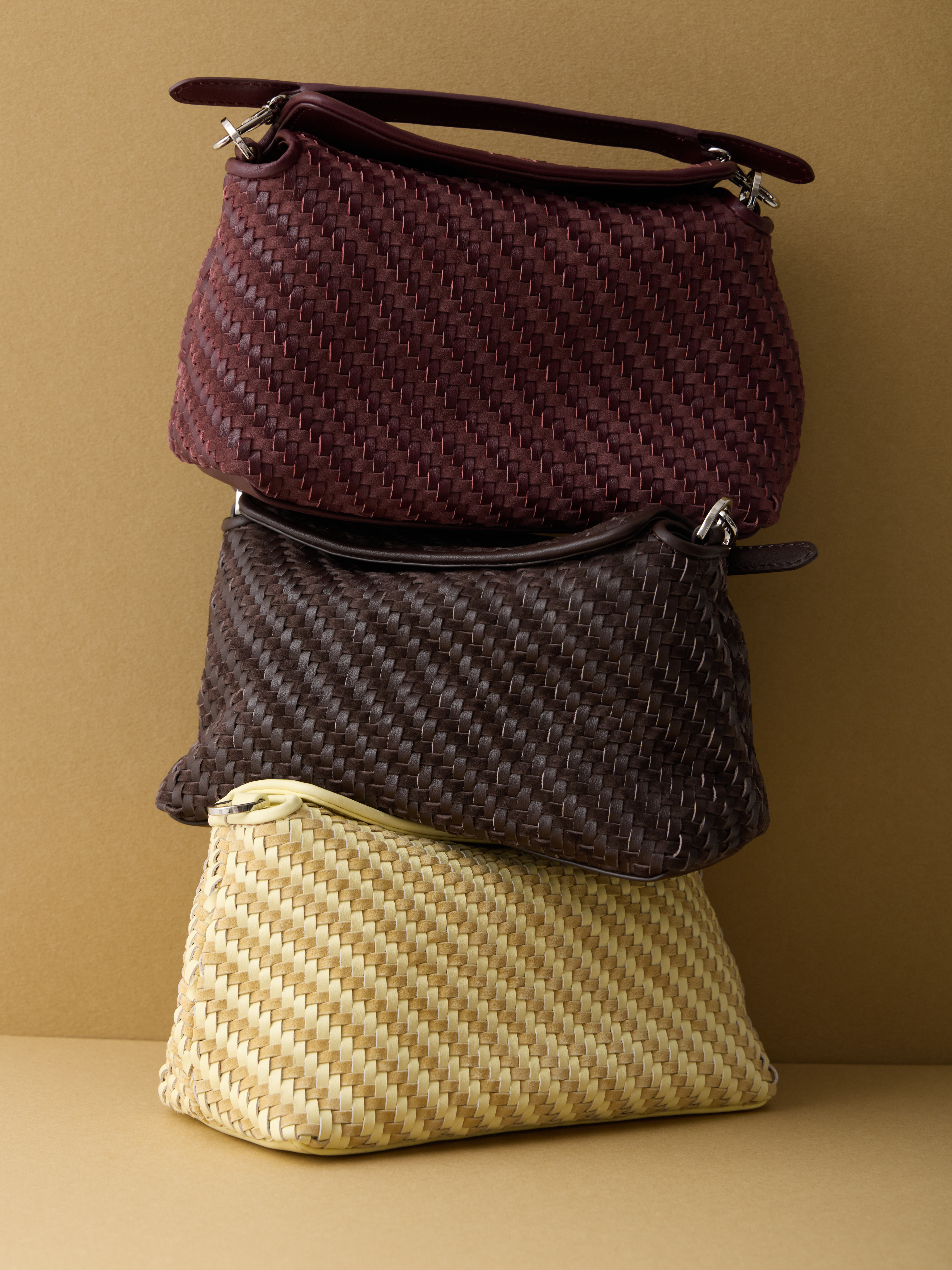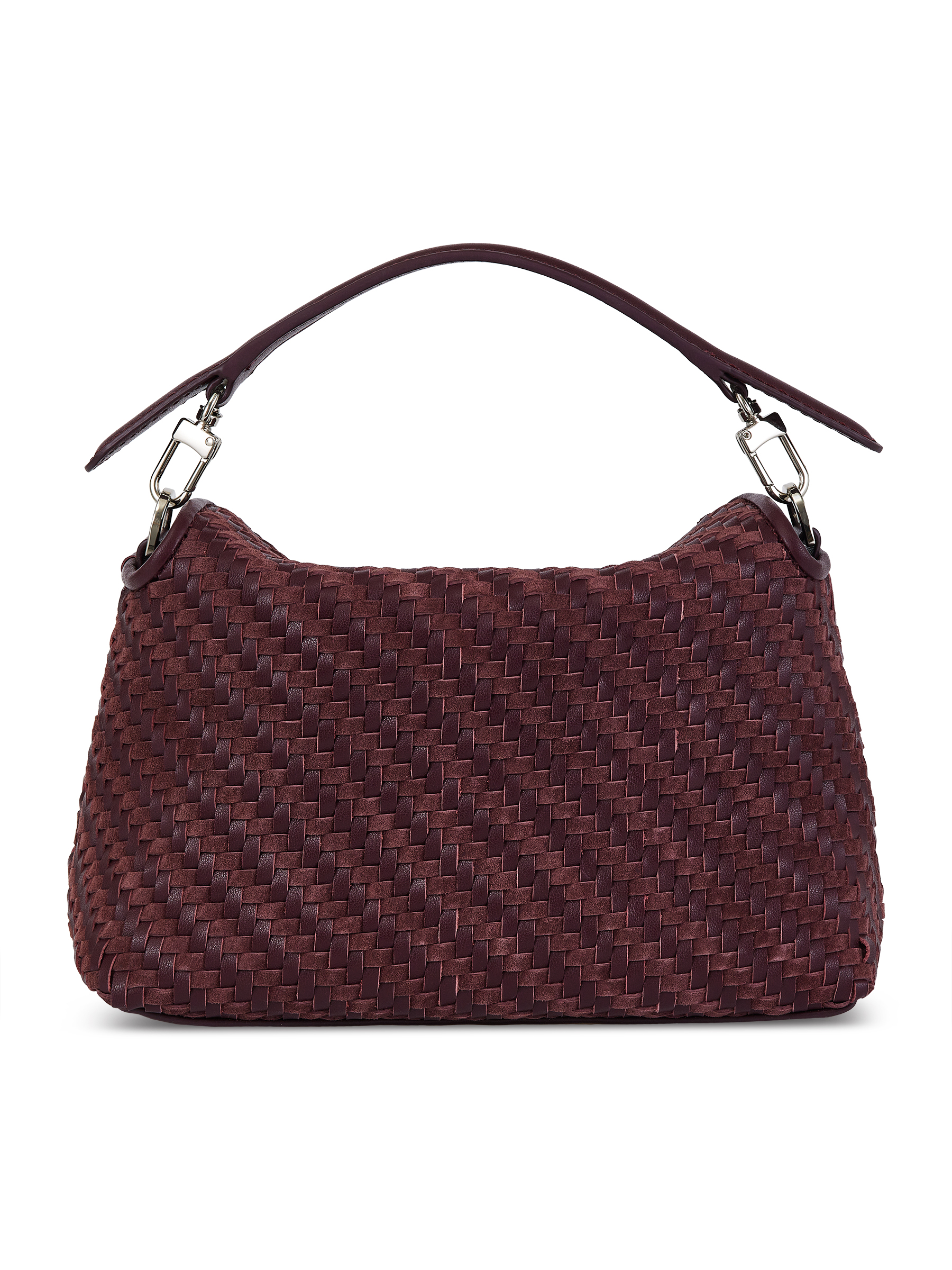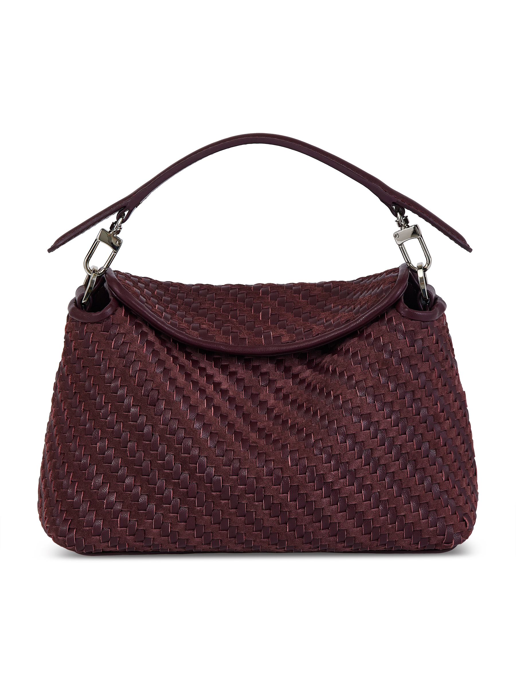 Натуральная кожа, плетеная фактура; хлопковый подклад; кожаный карман для карточек; съемная ручка; плечевой ремень.